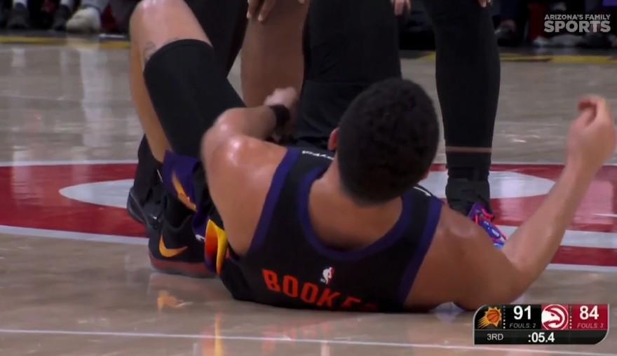 电子竞技下注-雪上加霜,布克90度崴脚伤退太阳一场伤俩主力,离场前三节就得31分
